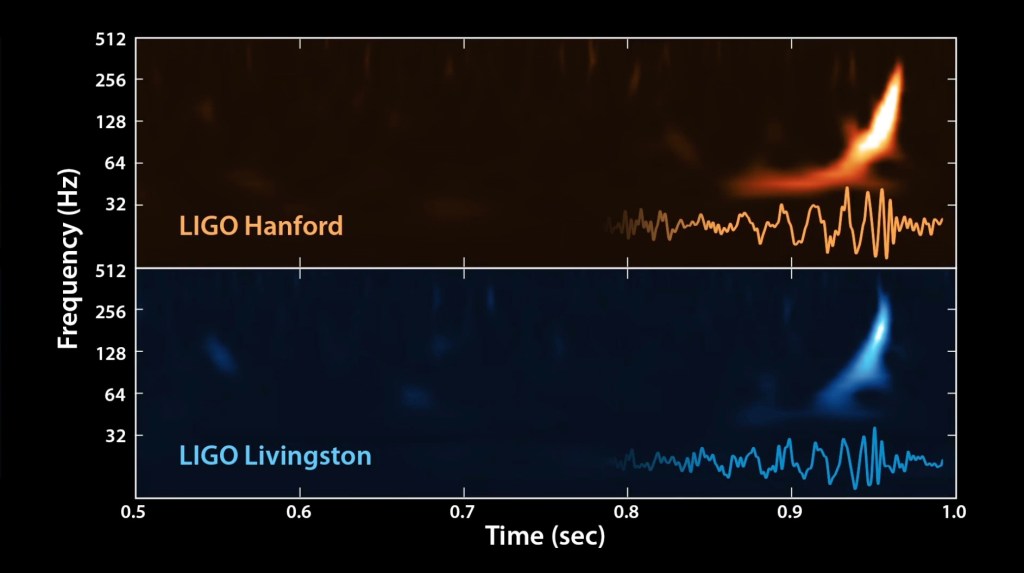 Η ιστορία των αλληλοδιαπλεκόμενων συμβάντων έχει ως εξής: 1,3 δισεκατομμύρια χρόνια πριν, σε μια εποχή όπου στην αρχέγονη γη κυκλοφορούν προς το παρόν κυρίως μονοκύτταροι οργανισμοί, 2 μαύρες τρύπες στροβιλίζονται η μία γύρω από την άλλη, σε απόσταση 1,3 δισεκατομμυρίων ετών φωτός. Καθώς περιδινούνται ολοένα και πιο έντονα, τελικά συγκρούονται, και μέσα σε αυτήν τη σύγκρουση, παράγεται ένα κοσμικά κατακλυσμιαίο παλιρροϊκό κύμα! Αυτό το παλιρροϊκό κύμα αρχίζει να διαδίδεται τότε προς όλες τις κατευθύνσεις με την ταχύτητα του φωτός, ενώ ένα μέρος του κατευθύνεται και προς τη γη. Ενόσω ταξιδεύει διασαλεύοντας την υφή του χώρου, απλώνεται παντού, και, όπως απλώνεται προς όλες τις κατευθύνσεις, αραιώνει. Και, καθώς έχει πλησιάσει στα περίπου 100 έτη φωτός, περίπου πριν από 100 χρόνια, ο Αϊνστάιν αρχίζει και σκέφτεται την πιθανότητα ύπαρξης τέτοιων κοσμικών κυμάτων, χωρίς να συνειδητοποιεί ότι ένα τέτοιο σαρωτικό κύμα καταφτάνει τάχιστα στον πλανήτη γη! Κάνει κάποιους υπολογισμούς, αλλά με την τεχνολογία της εποχής θεωρείται αδύνατο για οποιονδήποτε να το καταγράψει. Όταν το κύμα έχει φτάσει στα 50 έτη φωτός, όμως, κάποιοι χτίζουν τους πρώτους ανιχνευτές που θα μπορούσαν πράγματι να ανιχνεύσουν ένα τέτοιο κύμα, και, όταν το κύμα είναι 2 μέρες φωτός μακριά, εγκαινιάζουν τη νέα, ανακαινισμένη έκδοση αυτού του πειράματος. 2 μέρες αργότερα, αυτό το κύμα ξεβράζεται στη Γη και το καταγράφουν για πρώτη φορά! [9]