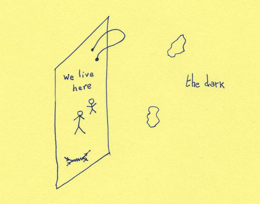 «Αν μια 3-βράνη είναι τεράστια, ίσως άπειρα μεγάλη, η κατάσταση αλλάζει. Μια 3-βράνη αυτού του είδους θα γέμιζε τον χώρο που καταλαμβάνει, όπως το νερό γεμίζει ένα τεράστιο ενυδρείο. Τέτοια πανταχού παρουσία υποδεικνύει ότι, αντί να σκεφτόμαστε την 3-βράνη σαν ένα αντικείμενο που τυχαίνει να βρίσκεται εντός των δικών μας τριών χωρικών διαστάσεων, θα πρέπει να τη φανταζόμαστε ως το υπόστρωμα του ίδιου του χώρου. Όπως τα ψάρια κατοικούν στο νερό, εμείς θα κατοικούσαμε μια τρισδιάστατη βράνη που γεμίζει τον χώρο. Ο χώρος, τουλάχιστον ο χώρος τον οποίο κατοικούμε άμεσα, θα ήταν πολύ πιο ενσώματος από ό,τι γενικά πιστεύεται. Ο χώρος θα ήταν ένα πράγμα, ένα αντικείμενο, μια οντότητα – μια 3-βράνη. Όπως τρέχουμε και περπατάμε, όπως ζούμε και αναπνέουμε, προχωράμε μέσα σε και διασχίζουμε μια 3-βράνη. Οι θεωρητικοί των χορδών αποκαλούν αυτό το σενάριο των βρανών35».
