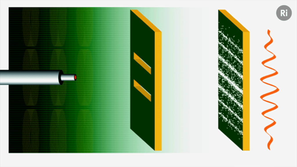 Οι φωτογραφίες που παρέθεσα για το πείραμα της διπλής σχισμής αντλήθηκαν από το κάτωθι βίντεο και την παρουσίαση του Τζιμ Αλ-Καλίλι στο Βασιλικό Ινστιτούτο.
