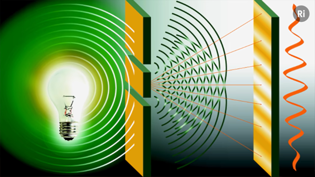 Αν στείλουμε κύματα (π.χ. νερού ή φωτός) σε ένα φράγμα με δύο σχισμές, κατά την έξοδό τους από αυτές τα κύματα θα αναμιχθούν, επιφέροντας δύο πιθανά αποτελέσματα: είτε θα ενωθούν οι κορυφές τους, δημιουργώντας μία μεγαλύτερη κορυφή (ενισχυτική συμβολή), είτε η κορυφή του ενός θα ενωθεί με την κοιλότητα του άλλου, αναιρώντας το ένα το άλλο (αποσβεστική συμβολή). Καθώς θα φτάνουν στην οθόνη ανίχνευσης, θα καταγράφουν το μοτίβο συμβολής, στο οποίο οι φωτεινές λωρίδες αποτυπώνουν την ενισχυτική συμβολή και οι σκοτεινές την απόσβεση. Εφαρμόζοντας αυτήν τη γνώση στο πείραμα με τα ηλεκτρόνια, το μοτίβο συμβολής αποκαλύπτει ότι αυτά έχουν κυματική συμπεριφορά!